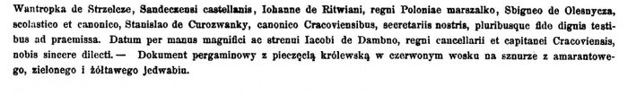 Takie listy są doskonałym źródłem m.in. dla badaczy historii różnych rodów, gdyż świadkowie to zwykle osoby możne, liczące się – wymieniane wraz z herbami, przydomkami, miejscami pochodzenia itp. I właśnie wśród tych świadków znajdujemy niejakiego Zbigniewa z Oleśnicy – scholastyka i kanonika / Sbigneo de Olesnycza, scolastico et canonico /.