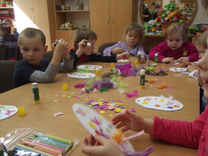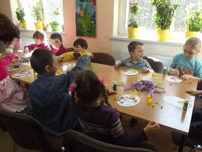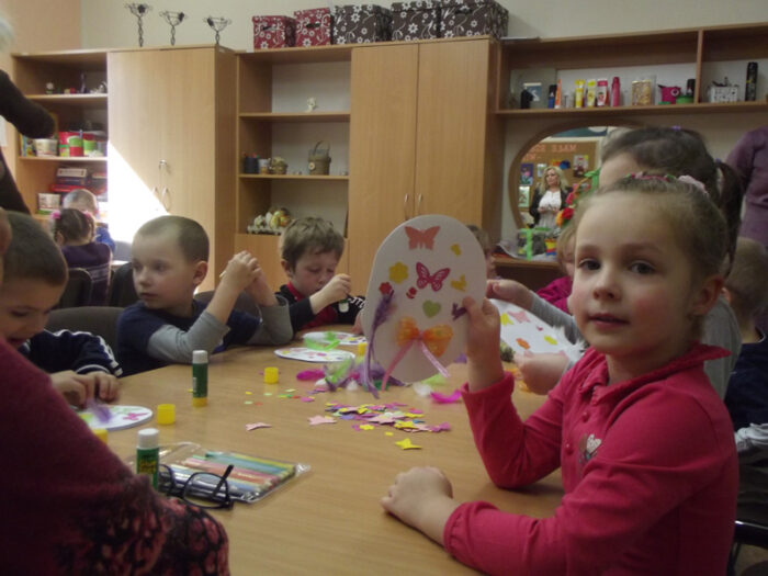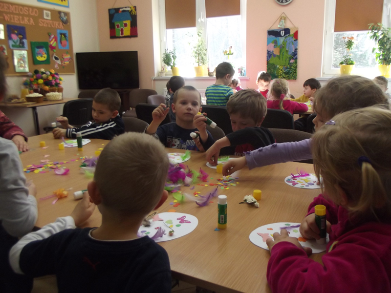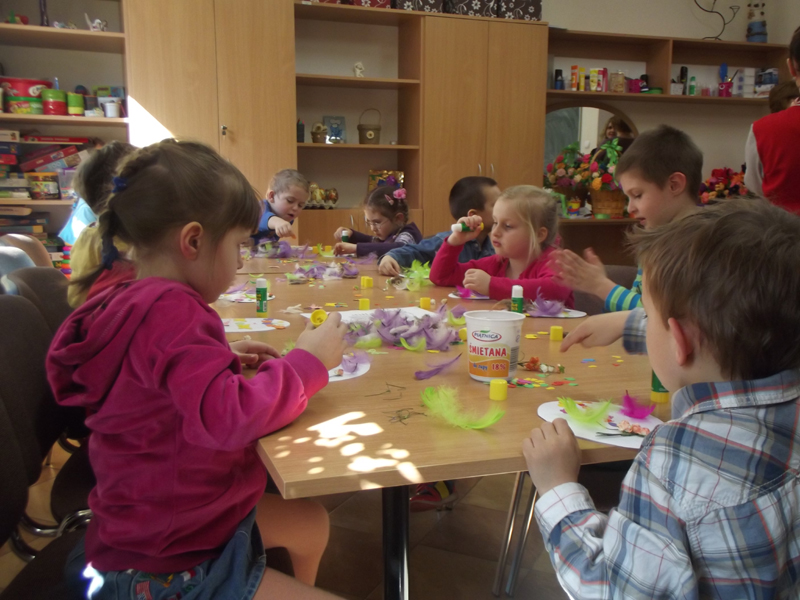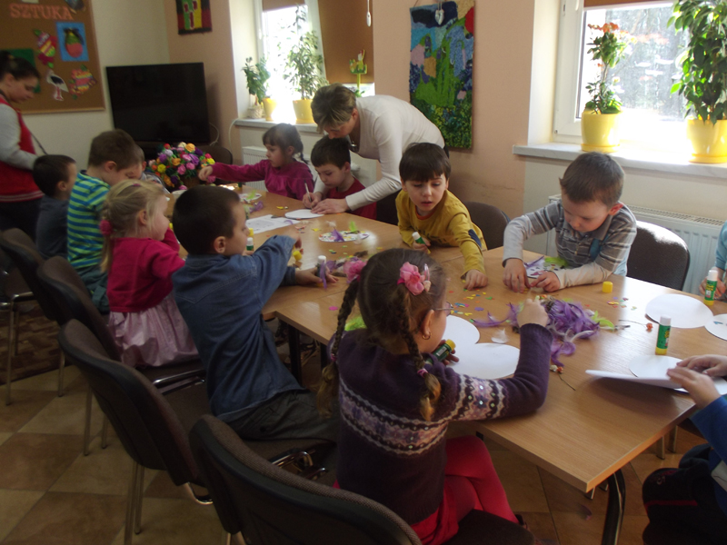 Dnia 26 marca Naszą Placówkę odwiedzili Przedszkolaki z Publicznego Przedszkola w Oleśnie, przysparzając nam wiele niespodzianek i radości. Po przywitaniu przybyłych gości przez Panią Kierownik Ireną Kawę, Przedszkolaki pod okiem Pań Nauczycielek i Terapeutów Naszego Domu, wykonali piękne kartki świąteczne, ozdabiając je różnymi gatunkami materiałów ozdobnych. Kartki miały kształt jajek, na których mieściły się symbole i emblematy świąteczne. Pięknie wykonane kartki dzieci zabrały do swoich domów. Na zakończenie wszyscy oglądnęli wystawę prac konkursowych „Święty Jan Paweł II – Pielgrzym Świata”.Niespodziankę, jaką zrobili nam Przedszkolaki, ich rodzice, nauczyciele i Dyrekcja Przedszkola, wywołała wiele radości i wzruszenia. Od darczyńców otrzymaliśmy artykuły spożywcze, które wykorzystamy podczas terapii w pracowni kulinarnej i gospodarstwa domowego.Bardzo serdecznie dziękujemy za pomoc i wsparcie, pani Dyrektor Izabeli Leus,[nbsp] Nauczycielom Publicznego Przedszkola w Oleśnie a także Przedszkolakom oraz ich rodzicom.