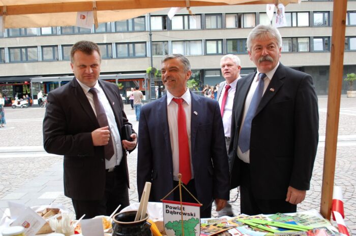 Stowarzyszenie Samorządów Powiatu Dąbrowskiego jest dobrowolnym, samorządnym i[nbsp]trwałym zrzeszeniem Powiatu Dąbrowskiego i Gmin, położonych w jego granicach. Stowarzyszenie działa od 2001 roku, a jego współpraca rozwija się poprzez: • wymianę doświadczeń w zakresie działalności organów samorządowych, • poparcie dla nawiązywania kontaktów handlowo – ekonomicznych między podmiotami gospodarczymi, • wymianę praktyk w zakresie ochrony środowiska naturalnego, • wymianę informacji w zakresie infrastruktury transportowej, • wymianę doświadczeń w zakresie rolnictwa, • wspieranie wymiany grup artystycznych w ramach przedsięwzięć o charakterze promocyjnym, • wspieranie kultury regionu, pielęgnowanie tradycji, realizację konkretnych działań i wspólnych projektów w dziedzinie turystyki i rekreacji. Stowarzyszenie realizuje wiele ciekawych projektów promujących region i lokalną kulturę. W[nbsp]tym roku w sierpniu po raz siódmy zorganizowało Święto Powiśla Dąbrowskiego – Dożynki Powiatowe i[nbsp]Targi gospodarcze. Jest to jedyne takie wydarzenie w powiecie, łączące tradycyjne święto plonów z promocją lokalnych przedsiębiorstw. Każdego roku impreza organizowana jest w innej gminie, dzięki czemu gmina ta, ma okazję na zaprezentowanie własnych walorów kulturalnych, gospodarczych i[nbsp]turystycznych zarówno lokalnej społeczności, jak i mieszkańcom ościennych województw.