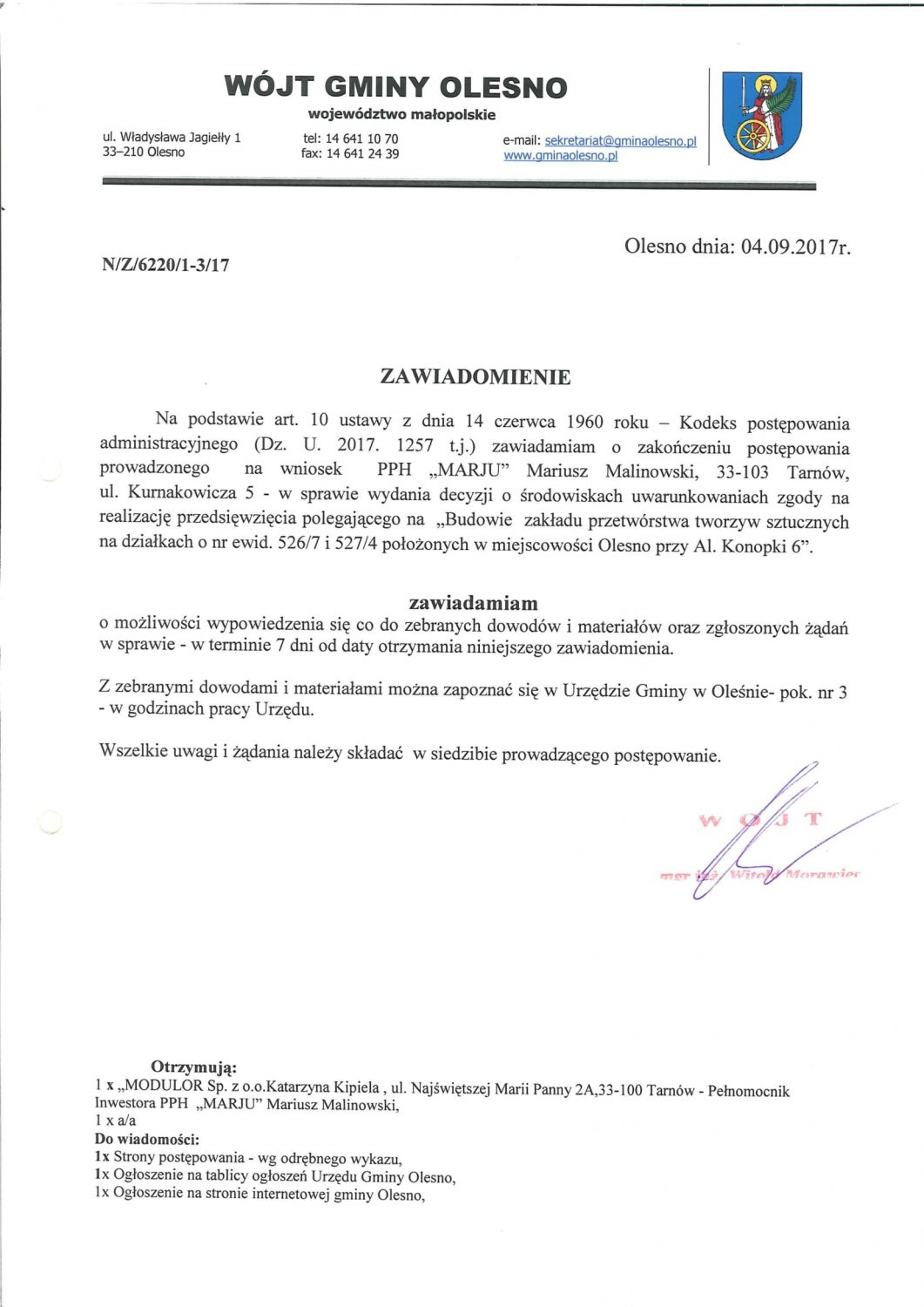 sekretariat@gminaolesno.pl